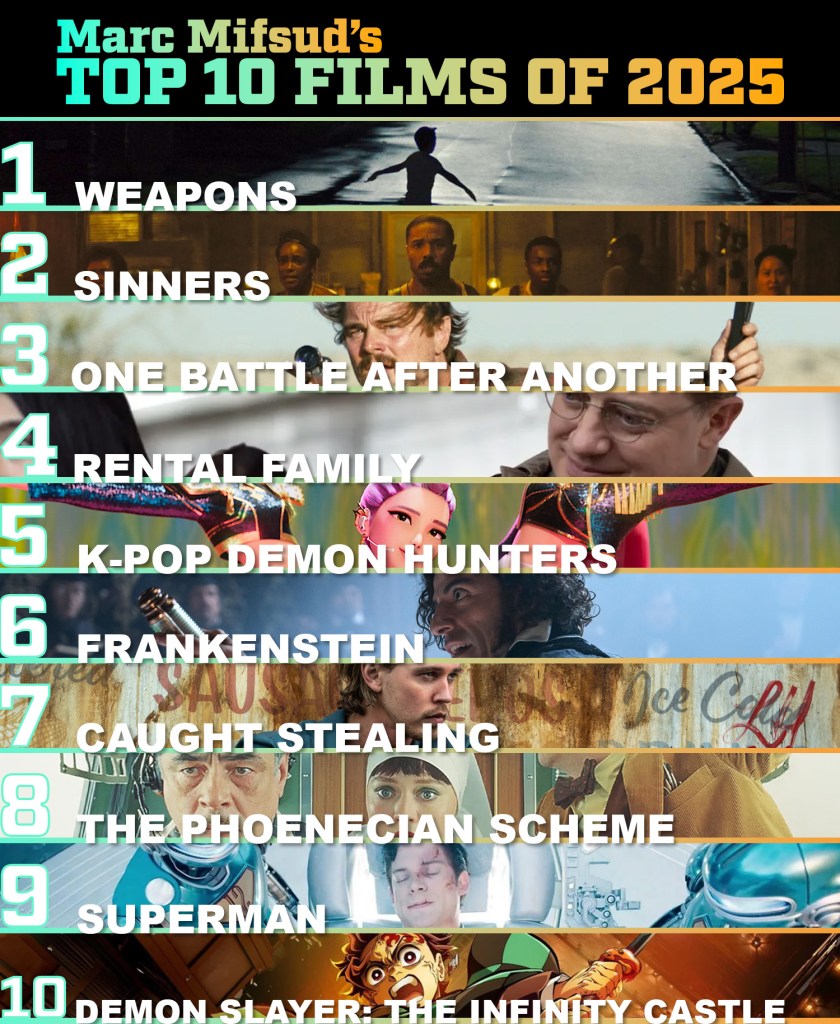 I was so happy with a lot of the films coming out of 2025, with some revolutionary horror films in Sinners and Weapons, as well as amazing anime films in Demon Slayer: The Infinity Castle and Chainsaw Man: Reze Arc. These are my top 10 films that have come out of 2025.